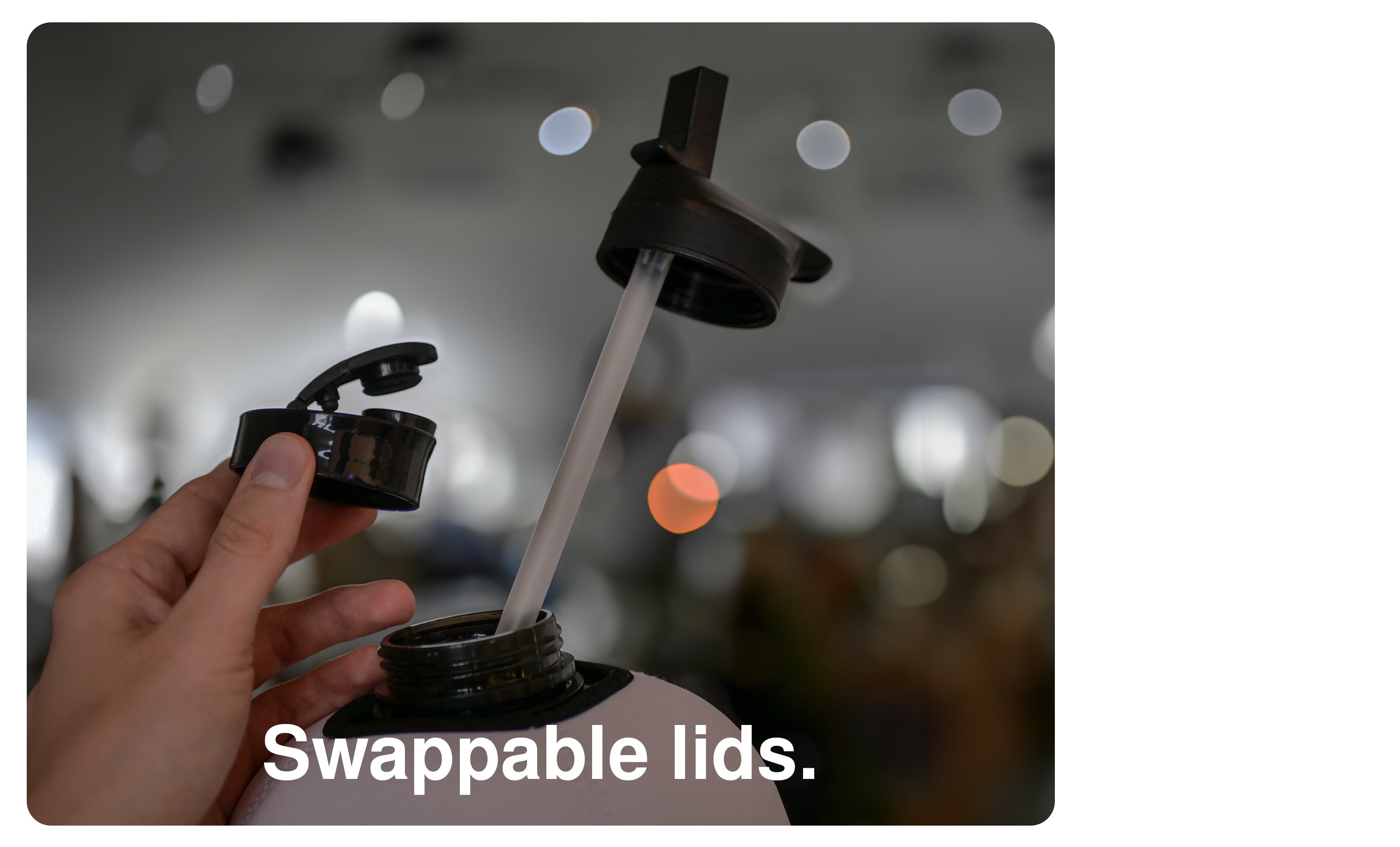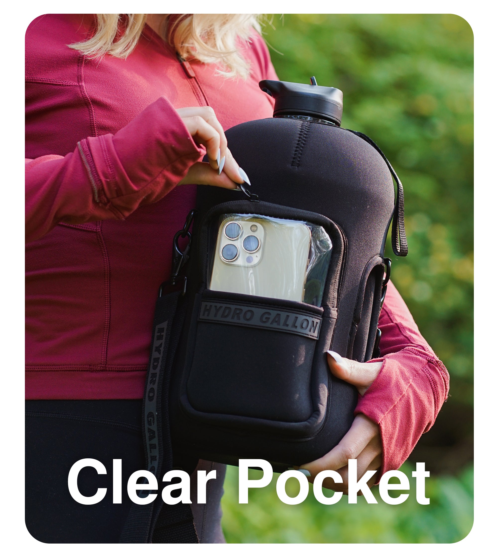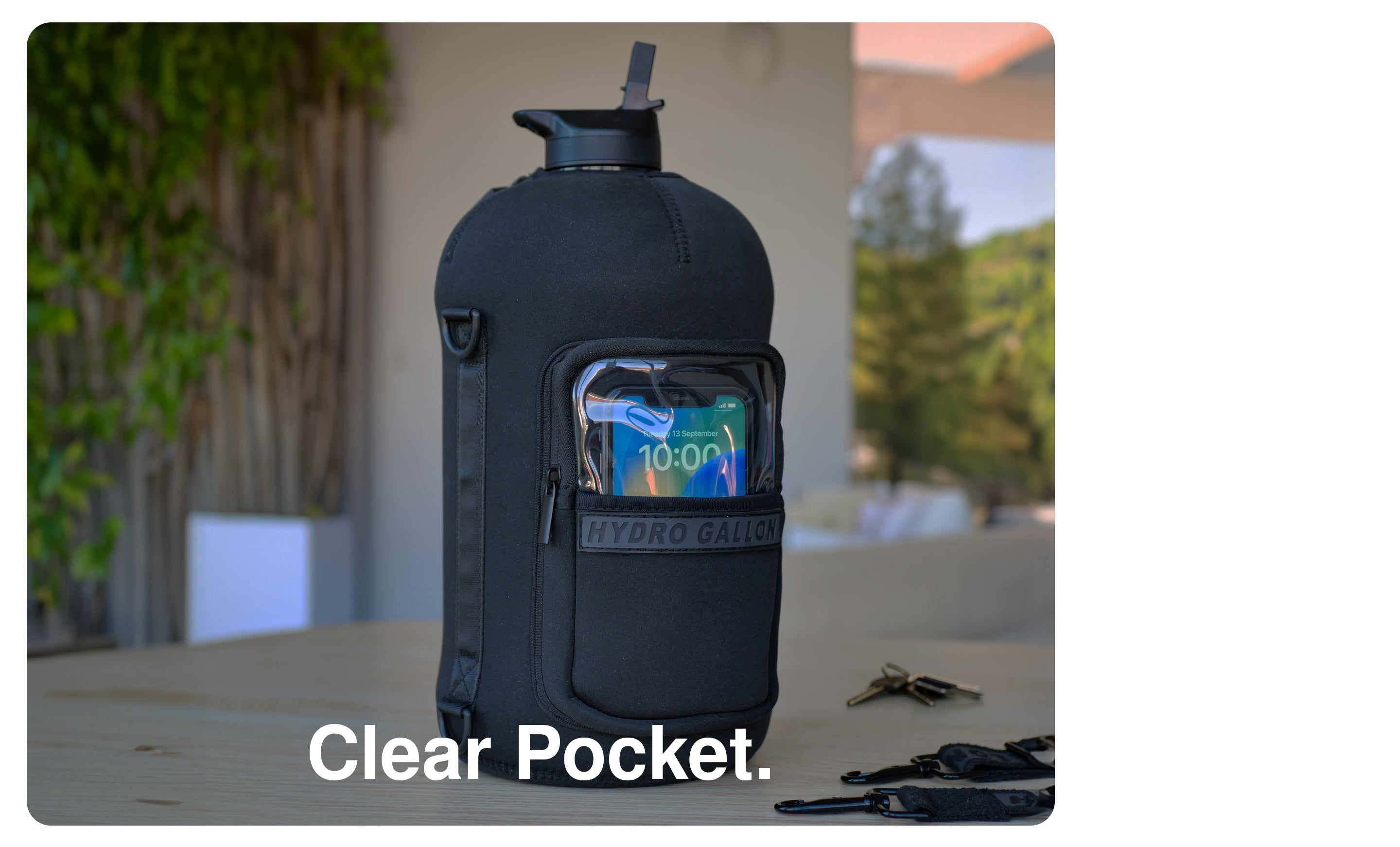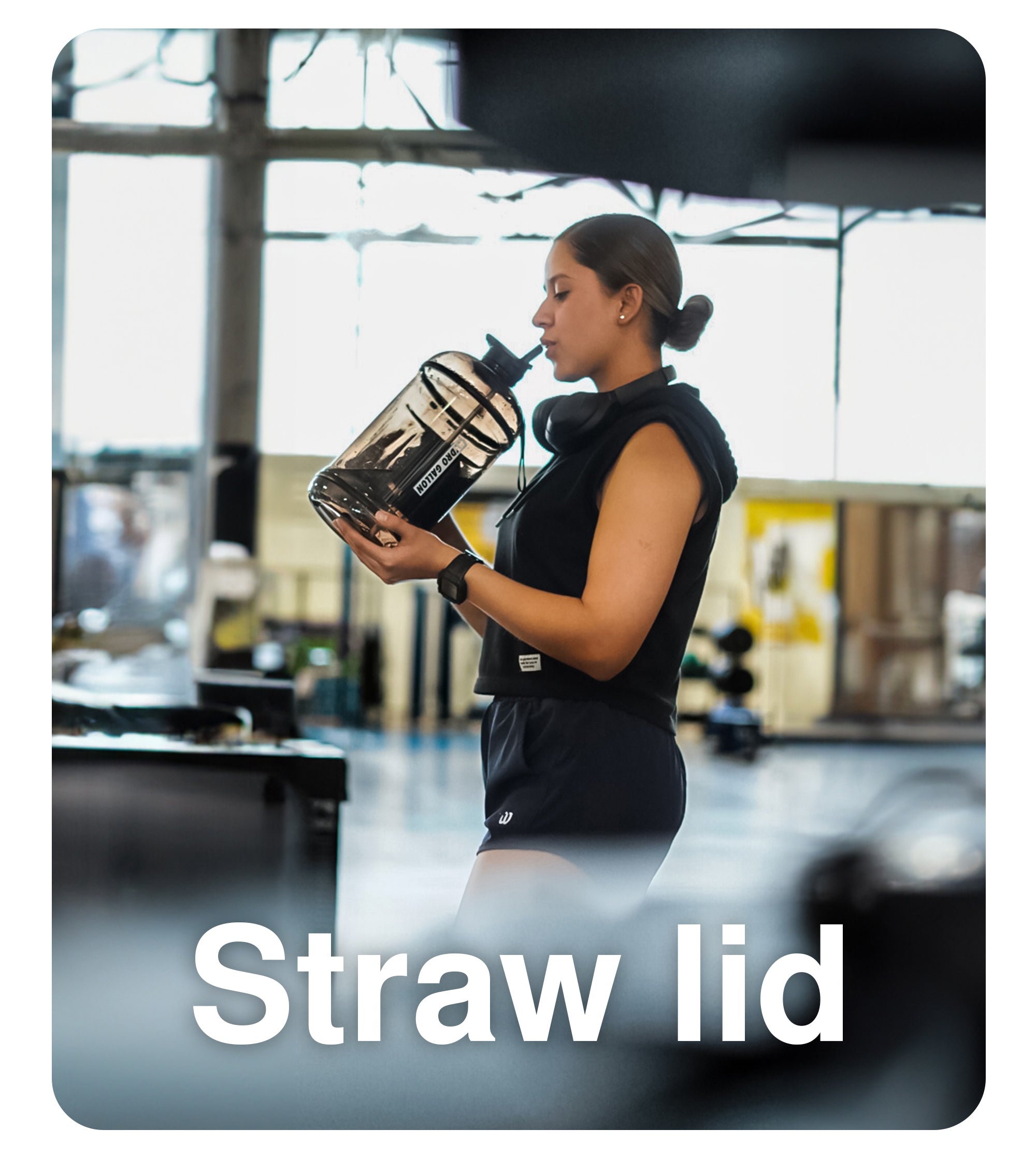 Enthält : Hydro Gallon® 1 Wasserflasche, Hydro Gallon® Pro -Hülle, 2 Schultergurte, Strohhalmdeckel, Ausgussdeckel